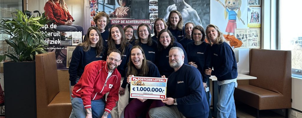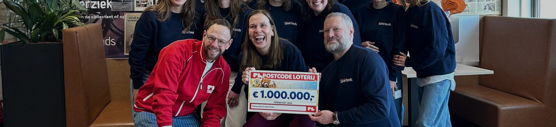 Geweldig nieuws: het Spierfonds heeft een prachtige bijdrage van maar liefst €1.000.000 ontvangen van de Postcode Loterij. Mede dankzij deze gift kunnen we belangrijke stappen blijven zetten in wetenschappelijk onderzoek naar spierziekten.