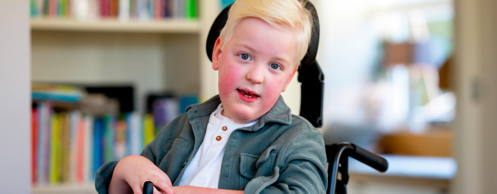 “Mees zit in een rolstoel, maar voelt zich niet beperkt”, steekt Ellen van wal. “Hij weet dat zijn spiertjes ziek zijn, maar ervaart zichzelf niet als ziek. Laatst zei hij nog: ‘Mama, ik heb helemaal geen last van mijn spierziekte’, en dat meende hij. Hij is ook een heel blij kind. Ga je met hem naar het tuincentrum of de supermarkt, dan is hij al oprecht gelukkig.” Mees gaat naar een reguliere basisschool en is daar het enige kind in een rolstoel. “Hij komt nu wel op een leeftijd waarop hij begint te merken dat hij sommige dingen niet kan. Lekker voetballen op het schoolplein, bijvoorbeeld. Maar meestal zorgen zijn klasgenootjes en leerkrachten dat er ook spelletjes zijn waar hij wel aan mee kan doen.”